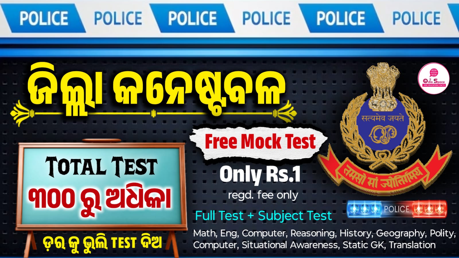 ଆପଣମାନଙ୍କ ଡର କୁ ଖତମ୍ କରିବା ପାଇଁ ଆମେ ଆଣିଛୁ କେବଳ ଓଡ଼ିଶା ର ପିଲାମାନଙ୍କ ଜିଲା କନେଷ୍ଟବଳ ୨୦୨୫ ର Free Full-Length Mock Test. ଯାହାକୁ ଆପଣ କେବଳ ୧ ଟଙ୍କା ଦେଇ Registration କରି Access କରିପାରିବେ |
